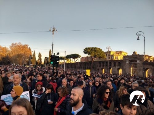 Un mare di sardine invade la piazza storica della sinistra, negli ultimi tempi affollata anche da Salvini, Meloni e Berlusconi. E lo fa senza simboli di partito ma con tanta creatività, cartelli e slogan fai da te. Nonostante un’organizzazione non professionale e un’acustica non all’altezza dell’evento (l’audio degli interventi è stato incomprensibile per la maggior parte della piazza) i romani hanno voluto partecipare all’evento. Un happening con pochi riferimenti ideologici e programmatici – per ora – ma mosso da una comune matrice antifascista e antisalviniana partecipato da manifestanti di ogni età.