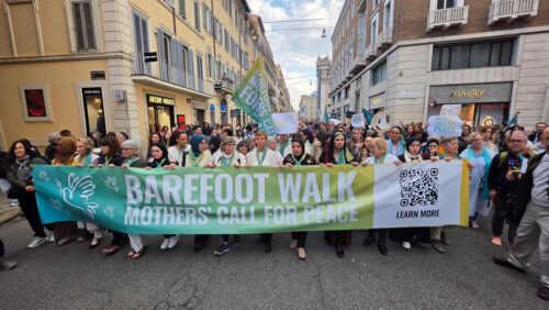 La camminata a piedi nudi delle madri palestinesi e israeliane a Roma.
