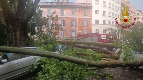 Un albero e’ caduto su diverse auto in sosta su via Cheren, traversa di via Nomentana, a Roma. Il grande platano ha coinvolto anche altri alberi adiacenti, ostruendo completamente la via. Sul posto diverse squadre dei vigili del fuoco al lavoro per cercare di liberare il passaggio e le autovetture coinvolte. Non ci sono stati feriti.