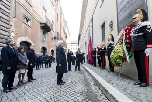 Il Presidente ha deposto una corono di fiori in via Caetani dove fu ritrovato il cadavere dello statista