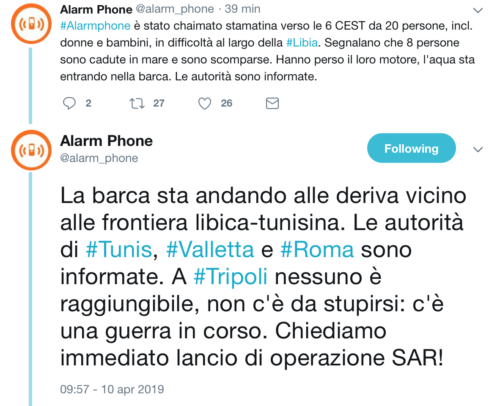 Secondo quanto riferito dai migranti, otto persone sarebbero disperse e la barca starebbe imbarcando acqua. Tutte le autorità (“Roma, Valletta e Tunisi”), sostiene Alarm Phone, sarebbero state informate. “E’ necessario un intervento urgente per salvare queste persone”, è l’appello che arriva da Mediterranea Saving Human che rilancia la comunicazione della linea telefonica diretta e autorganizzata per rifugiati in difficoltà nelle acque del Mediterraneo.