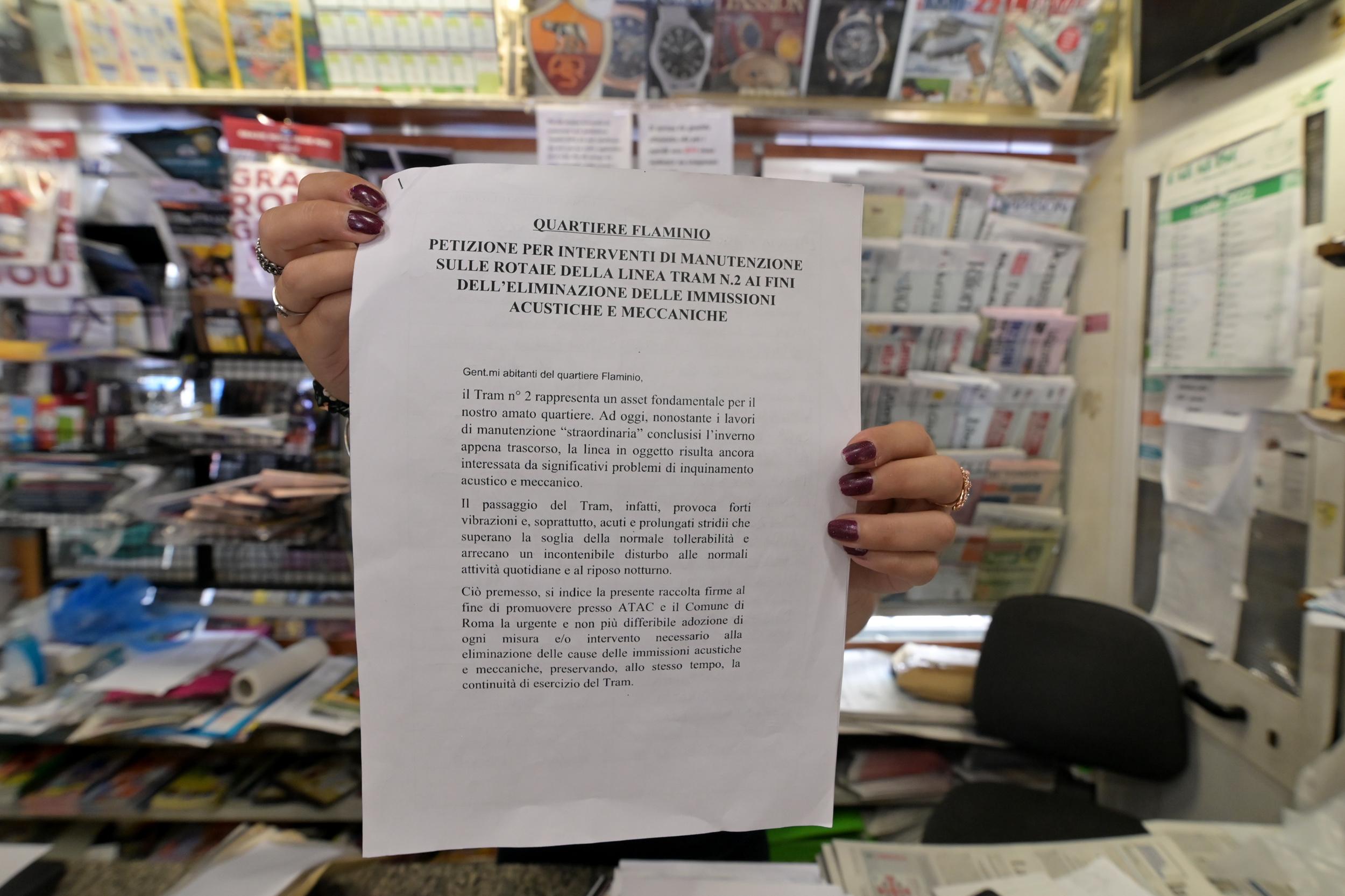 Di fronte alla mancanza di risposte da parte delle istituzioni, i cittadini hanno deciso di avviare una petizione. “L’iniziativa è nata in maniera del tutto spontanea su una pagina Facebook”, afferma Giovanni Incardona, tra i promotori della raccolta firme. Dopo una settimana, circa duecento persone sono andate nei due punti di raccolta firme. Il primo è all’edicola di viale Pinturicchio. L’altro è al bar Duetto, in largo Girolamo Rainaldi. “C’è grande seguito per l’iniziativa, i residenti non ce la fanno più”, commenta Erika Sembroni, che lavora al bar Duetto. “Siamo consapevoli del fatto che il tram 2 costituisca un asset fondamentale per la viabilità del quartiere, per questo non chiediamo la sospensione del servizio, ma soltanto che vengano fatti gli interventi di manutenzione necessari per ridurre questi rumori, assolutamente intollerabili, e tutelare le orecchie degli abitanti”, conclude Incardona.