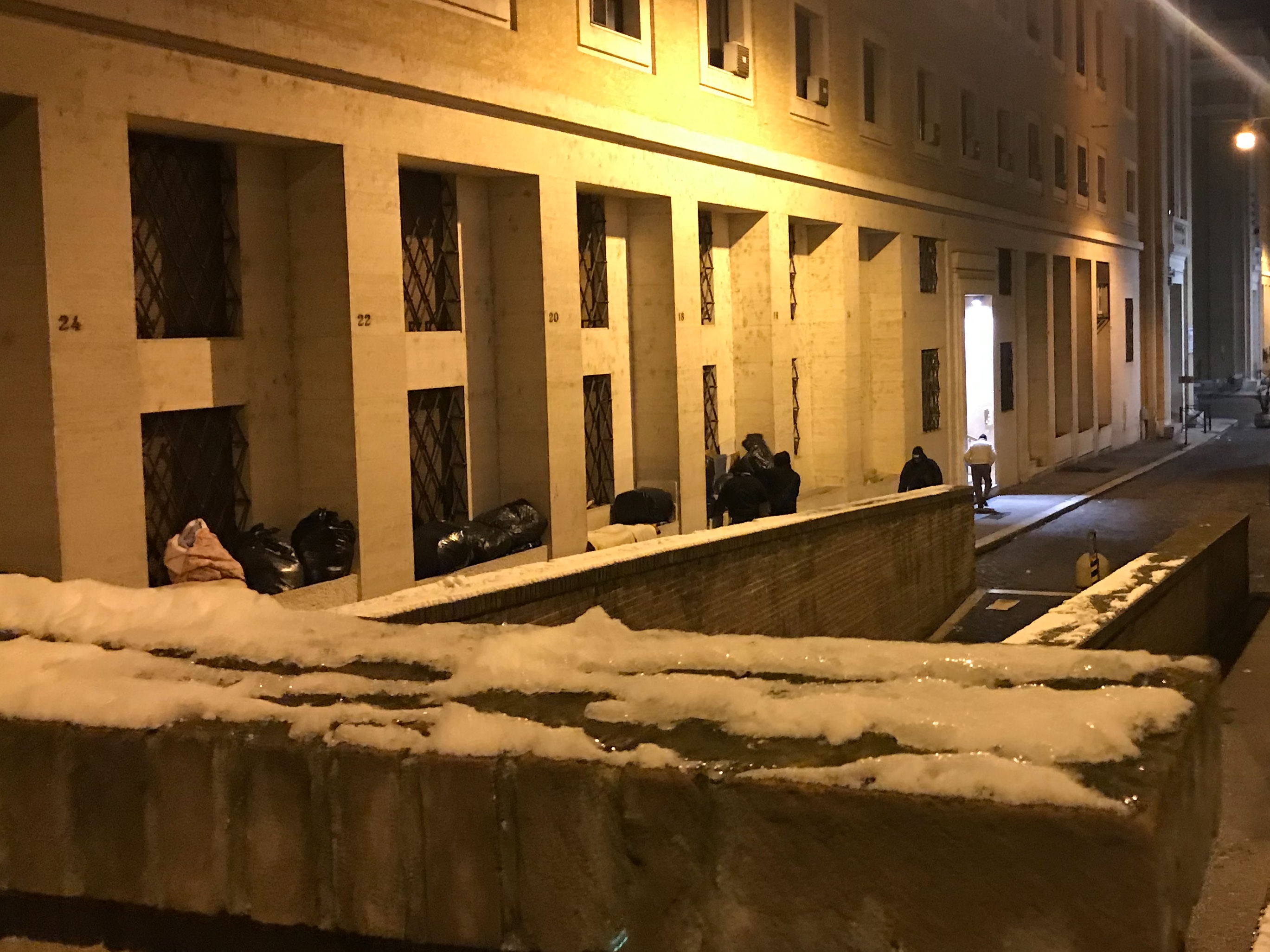 “Sono circa tremila i senzatetto che in queste ore, con le temperature a Roma scese sotto lo zero, rischiano di morire assiderati”, dicono dalla Comunità di Sant’Egidio, che ha aperto ai senzatetto San Calisto e ha rafforzato tutte le sue strutture, compresa la mensa di via Dandolo.