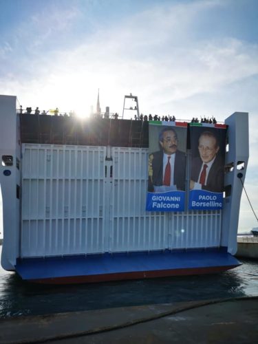 Ad attenderli, Maria Falcone, Presidente dell’associazione Giovanni Falcone e il sindaco di Palermo Leoluca Orlando. Ieri sera si è svolto sulla nave un dibattito sul tema della legalità al quale hanno preso parte i ragazzi.