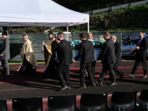 Tanta commozione, lacrime, fiori, palloncini e fumogeni per l’ultimo saluto Alexandru Ivan, il 14enne ucciso nella notte tra il 12 e io 13 gennaio nel parcheggio della stazione Metro C Pantano a Monte Compatri. I funerali si sono svolti nello stadio dei Gelsi di Valmontone. Un gazebo al centro della pista d’atletica, un microfono e tantissime corone di fiori di vari colori poste accanto alla bara, di fronte alla quale si sono raccolte circa un centinaio di parenti, amici e conoscenti della vittima. Tra la folla, tantissimi ragazzi con dei palloncini in mano: uno di questi, di colore azzurro, portava la scritta “Sempre nel mio cuore, la tua migliore amica Noemi”. Alla funzione, tenuta da padre Iosif Ciontu e padre Gabriel Apopei, erano presenti anche alcuni rappresentanti delle istituzioni, come il sindaco di Monte Compatri, Francesco Ferri, la sindaca di Valmontone, Veronica Bernabei, e il vicesindaco della Citta’ metropolitana di Roma, Pierluigi Sanna.