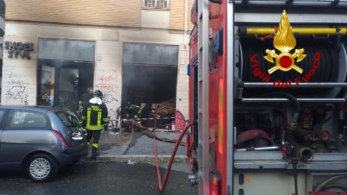 Incendio questa mattina intorno alle 11,30 in un negozio di scarpe in via Giuseppe Sirtori, al piano terra di un palazzo di 4 piani in zona Portuense.
