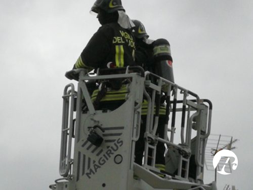 In un attimo alcuni pompieri hanno perlustrato le abitazioni limitrofe, anche per creare ipotetiche vie di fuga ed altri hanno manovrato la lunghissima scala che in un soffio è arrivata molto in alto e ben oltre la canna fumaria.