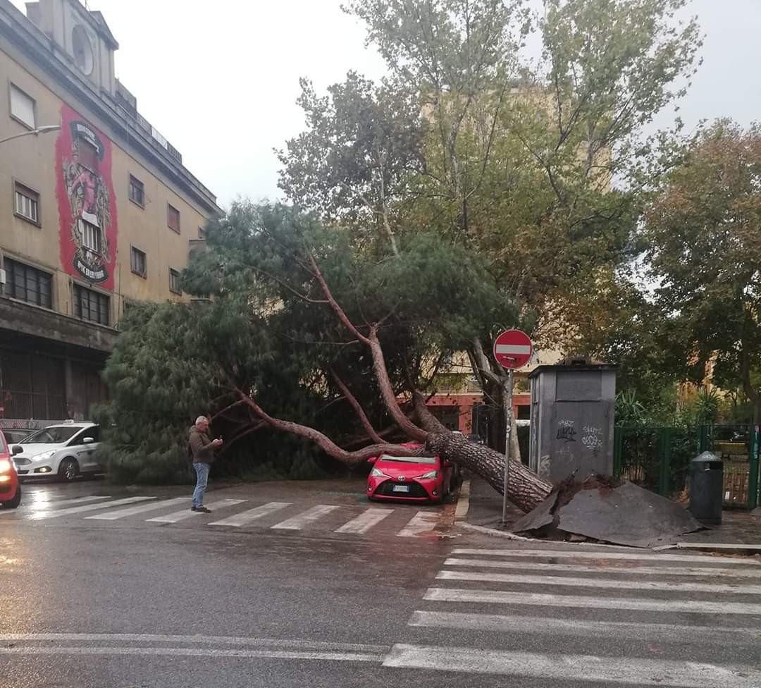 La scena apocalittica è stata ripresa da passanti e residenti questa mattina. Siamo a Piazza Ragusa, zona San Giovanni, Roma. Un enorme pino è crollato finendo sulla carreggiata. A farne le spese – come si vede dalla foto scattata da un cittadino – un’automobile parcheggiata nelle vicinanze.