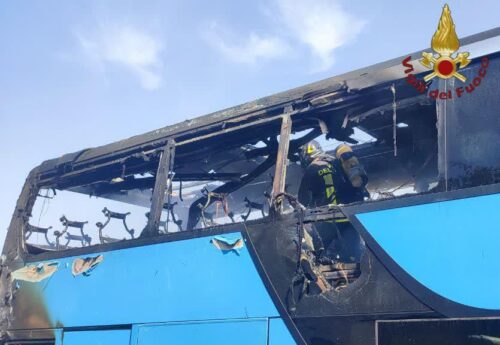 Vigili del fuoco del Comando di Roma al lavoro in via Aurelia, altezza civico 796, a Roma, per l’incendio di un pullman. Secondo quanto si apprende, le fiamme sono partite dal vano motore e hanno gravemente danneggiato il mezzo. Nessuna persona è rimasta ferita. Sul posto anche le forze dell’ordine