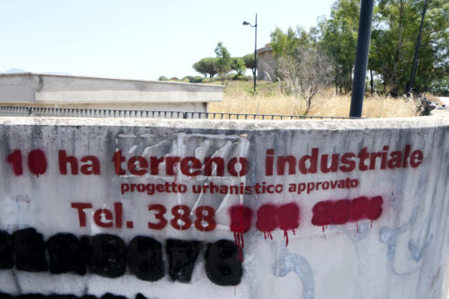 La scritta sul muro all'ingresso del terreno a Santa Palomba.
