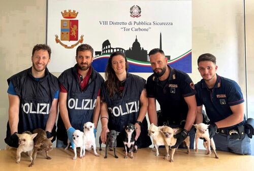 Sono stati salvati dai poliziotti i nove cuccioli di Chihuahua chiusi in un’auto parcheggiata all’Eur.