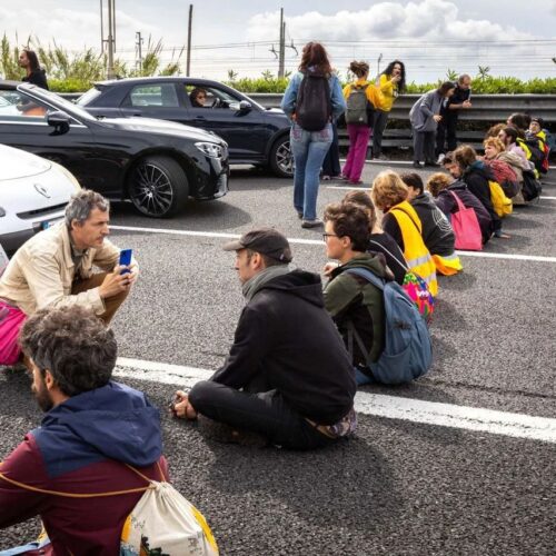 Questa mattina intorno alle 8:00 diversi attivisti di Ultima Generazione hanno bloccato il traffico sulla tangenziale es