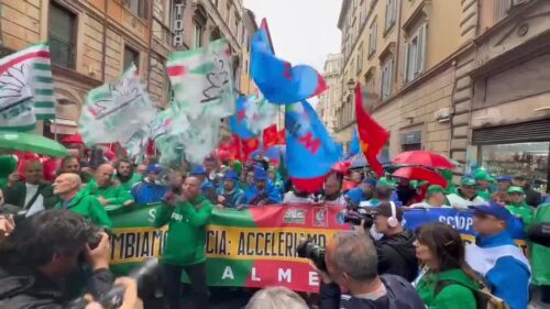 È partita stamattina, da piazza Barberini a Roma, la manifestazione nazionale del settore automotive, indetta da Fim Cisl, Fiom Cgil e Uilm Uil. “Cambiamo marcia: acceleriamo verso un futuro più giusto”, recita così lo striscione verde, rosso e blu in testa al corteo. Gli organizzatori prevedono la partecipazione di 7-10mila partecipanti, provenienti da tutta Italia, che hanno raggiunto la Capitale con almeno 200 pullman. I lavoratori protestano per chiedere garanzie sull’occupazione e il rilancio dell’industria dell’automobile in Italia.