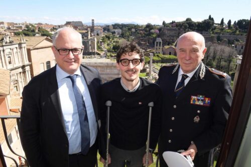 In un messaggio sui social network Gualtieri spiega: “Bello riabbracciare oggi in Campidoglio Daniele Virgili, il giovane agente della polizia locale che, mentre era in servizio, è stato travolto da un’auto. Ricordo ancora quella notte drammatica, l’ansia per le sue condizioni, la paura per il suo futuro. Oggi vederlo qui, sorridente e pieno di energia, è qualcosa di speciale. Una carica di forza per tutti, per me e per il corpo della polizia locale, che non ha mai smesso di sostenerlo. Non vediamo l’ora di rivederlo in divisa, circondato dall’affetto dei suoi colleghi. Caro Daniele, la tua grinta e la tua determinazione sono un esempio straordinario per tutti. Ti aspettiamo”.