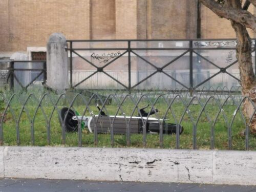 Ma tornando all’incipit, il mobility sharing romano si rivela ogni volta complesso e pieno di insidie. Come raccontato dal blog Roma fa Schifo, la Capitale s’è risvegliata dall’ultimo weekend con tanti monopattini riversati per terra o in stato d’abbandono: