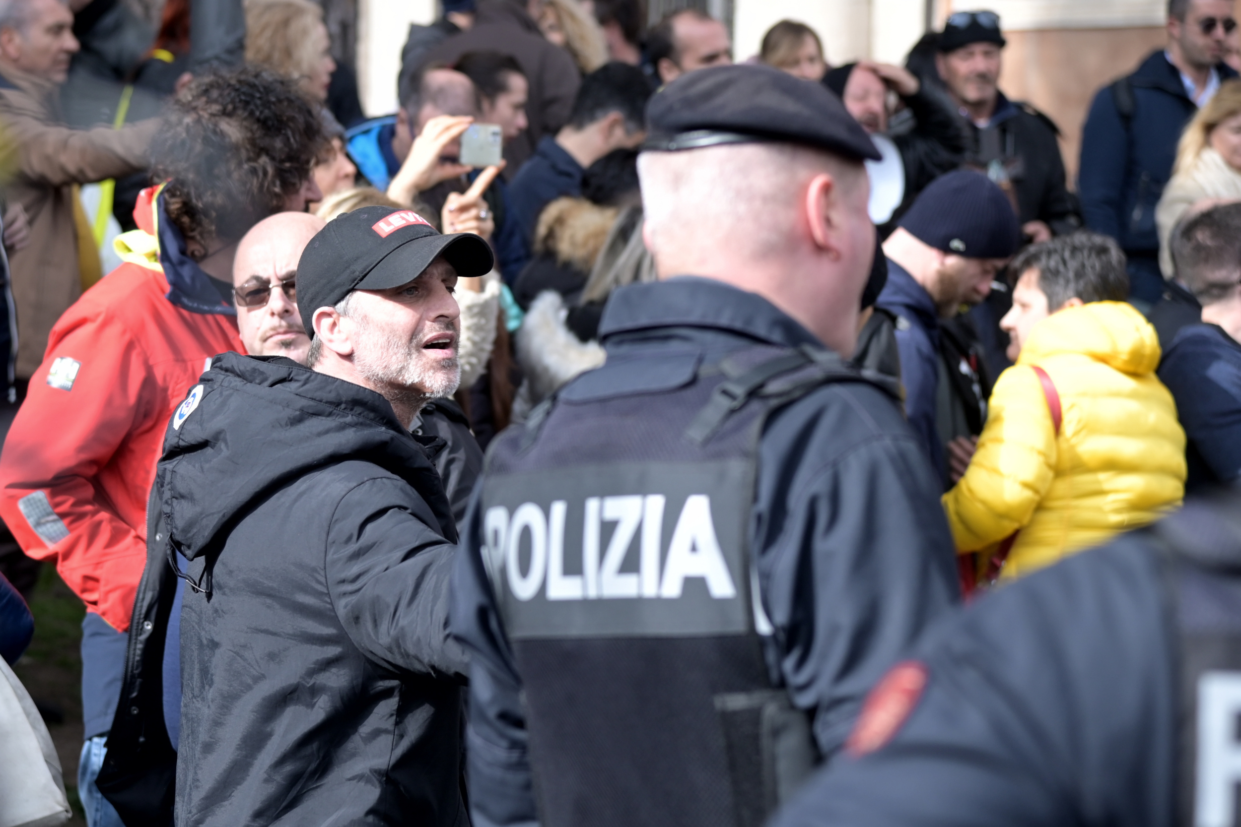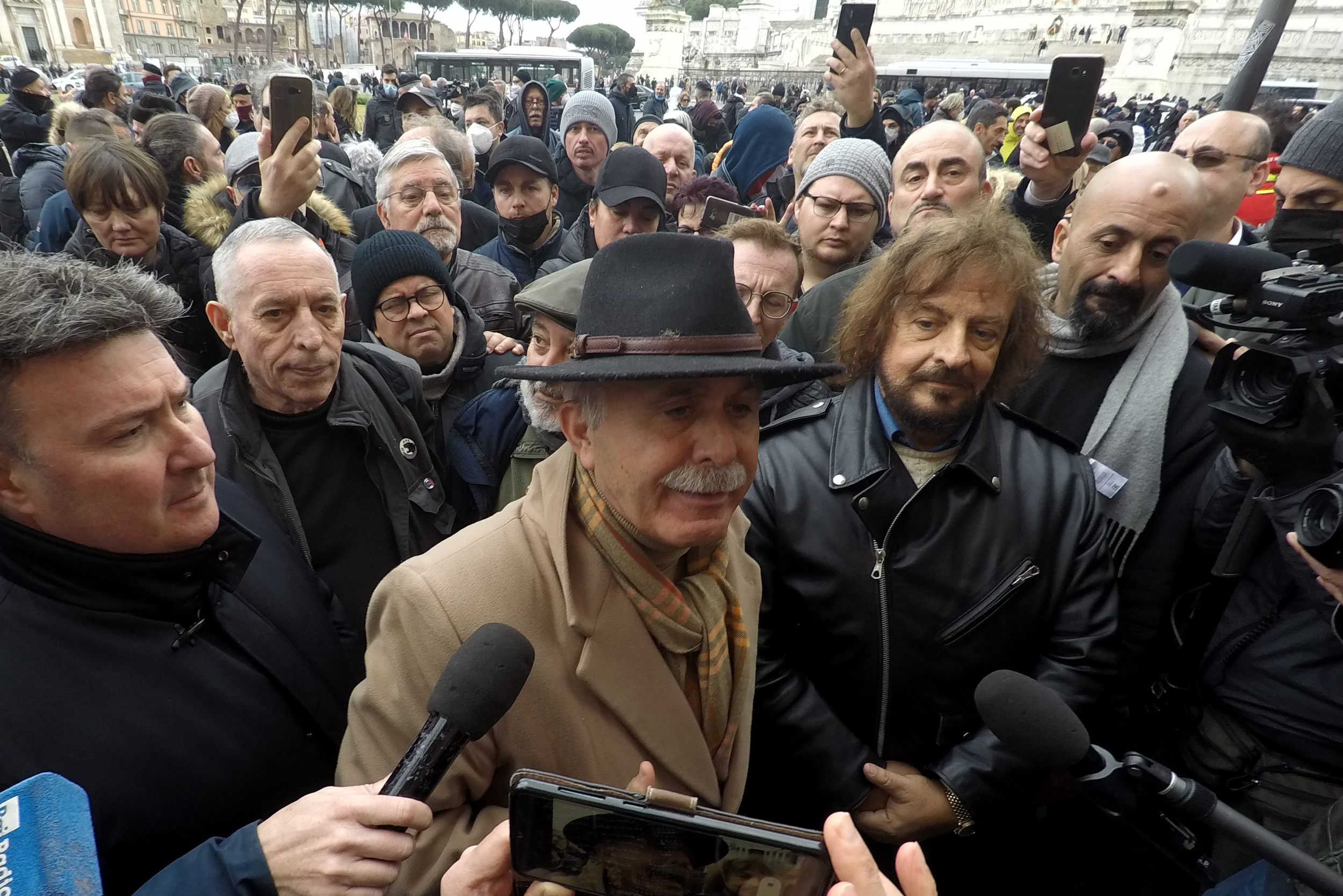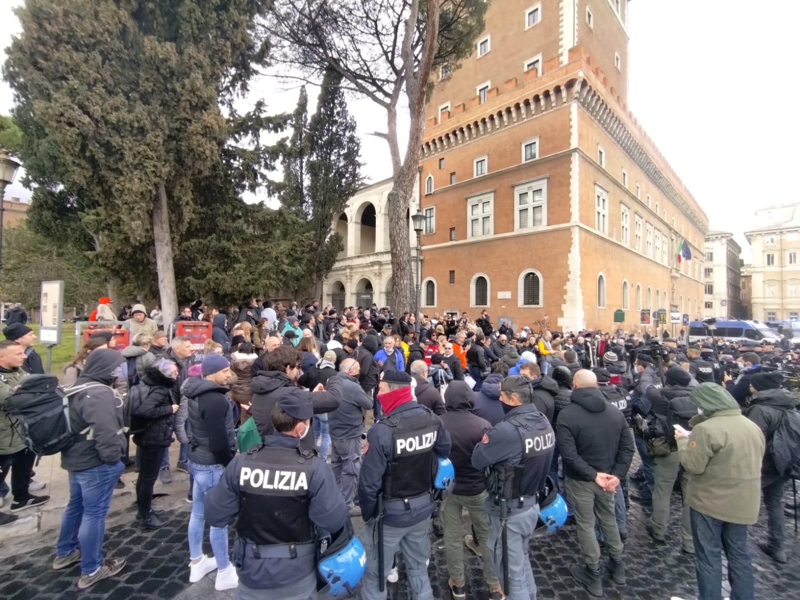Secondo gli organizzatori alcuni manifestanti sono stati bloccati all’Arco di Travertino e sulla Cristoforo Colombo “e non riescono a raggiungere il concentramento”. Presente il leader dei no vax di Torino Marco Liccione.