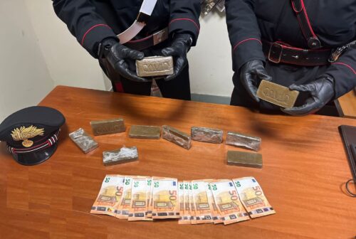 L’uomo è apparso subito nervoso e a quel punto i carabinieri hanno deciso di verificare meglio. Nel corso di una ispezione, sono stati trovati 10 panetti di hashish, del peso complessivo di 1 chilo, occultati, nel vano motore del veicolo, e la somma di 1.050 euro, ritenuta provento di attività illecite, nella tasca interna del giubbotto del 56enne. I panetti erano tutti marchiati con la scritta “Covid”.