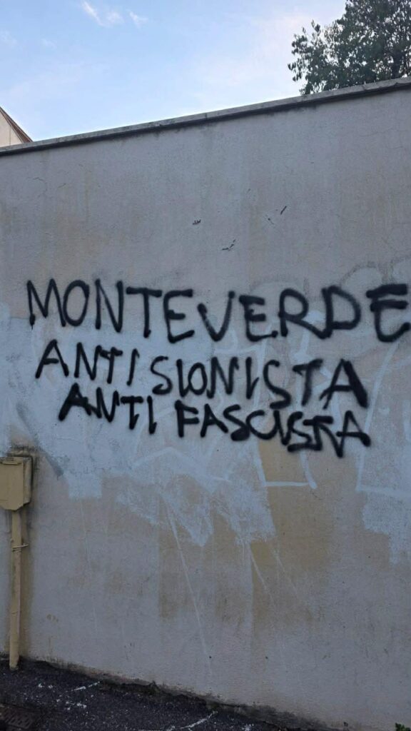 Una scritta antisemita in vernice rossa, ‘Ebrei sionisti cancro del mondo”, accompagnata da una stella di David e una svastica è, intanto, comparsa sul lungotevere degli Anguillara, a pochi passi dalla sinagoga a Roma.