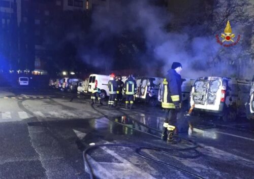 Nessuna persona è rimasta coinvolta nell’incendio ma i veicoli sono stati completamenti distrutti dalle fiamme. Tutte le auto erano posteggiate in un’area esterna. Sono in corso gli accertamenti, insieme alle forze dell’ordine intervenute, per stabilire le cause dell’accaduto.