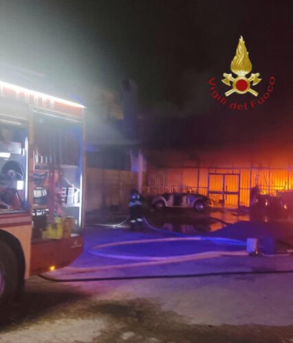 Incendio in un’attività commerciale in via Castel di Leva 271, a Roma, a mezzanotte circa. Sul posto i vigile del fuoco del comando di Roma. Nessuna persona, secondo quanto si apprende, è rimaste ferita. Le fiamme si sono propagate all’interno del capannone per causa ancora al vaglio e hanno distrutto un bus, quattro auto e una roulotte.
