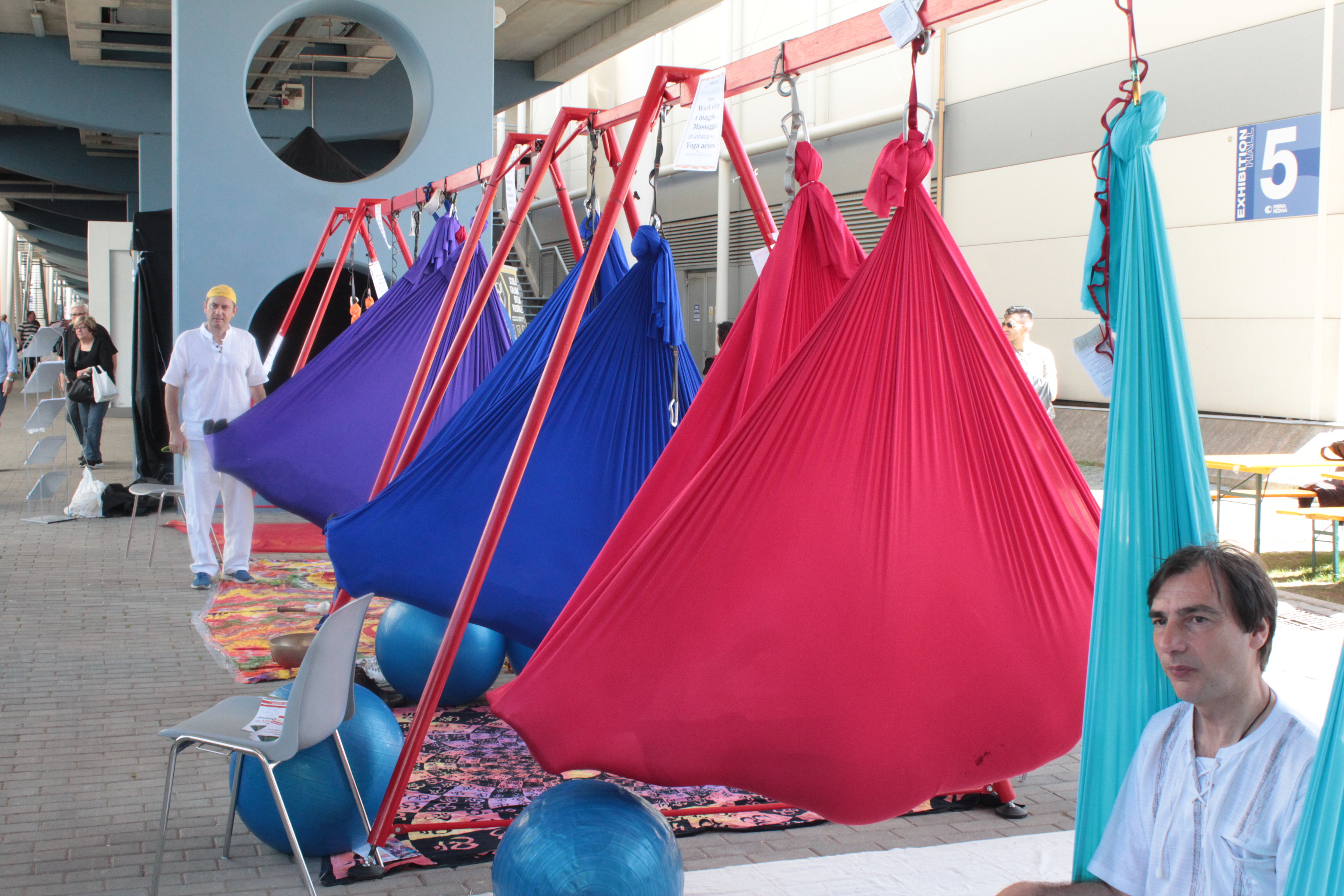All’interno del Festival dell’Oriente un ruolo importante è occupato da frutta esotica essiccata, spezie raffinate e incenso. Al centro però sempre il concetto di meditazione e spiritualità, ben rappresentato dall’Unione Induista Italiana. Non mancano contaminazioni, come il caso di Enrico Valbonesi, che ha unito un oggetto di origine andina come l’amaca alla pratica indiana dello yoga. Ha così ideato una tecnica di massaggi e meditazione in assenza di peso. Vi assicuro che è un’esperienza unica e molto rigenerante.