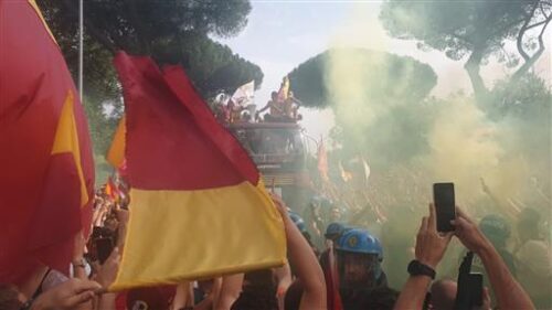 Che la festa abbia inizio. Alle 16.50 sono partiti i due bus scoperti da via dell’Arcadia al Circo Massimo con giocatori, staff e coppa a bordo per celebrare il successo della Roma di ieri in Conference League. Gia’ a Trigoria centinaia di tifosi hanno salutato i calciatori alla partenza, mentre ad attenderli in centro dalle 16 c’erano gia’ oltre cinquemila persone per un numero destinato a crescere.