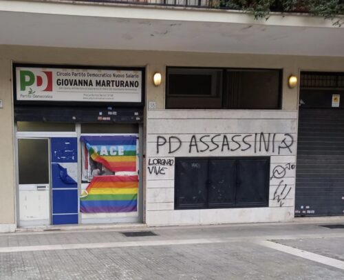 “Voglio esprimere la mia vicinanza agli amici e compagni della sezione del Partito democratico del Nuovo Salario in III Municipio dedicata a Giovanna Marturano. Questa mattina infatti è comparsa sul muro vicino alla sezione la scritta ‘Pd assassini’ con tanto di falce e Martello. Ci tengo a mandare un abbraccio all’ignorante e al codardo di turno”. Lo dichiara in una nota Riccardo Corbucci, consigliere comunale del Partito democratico di Roma.