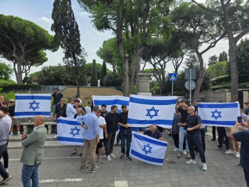 Alcune decine di persone della comunità ebraica di Roma sono scese in piazza in via dei Cerchi, al Circo Massimo, sventolando le bandiere dello Stato di Israele. La manifestazione è arrivata in risposta al fashmob per Gaza convocato da Alessandro Di Battista nell’ambito della festa del Fatto Quotidiano, che si svolge sempre al Circo Massimo. “Siamo stanchi di vedere questo sostegno ai terroristi di Hamas. Poco fa c’è stata la manifestazione di Di Battista per la flotilla e quindi tra noi è nato un tam tam veloce e abbiamo deciso di scendere in piazza”, ha raccontato Angelo Pavoncello, esponente della comunità ebraica di Roma.