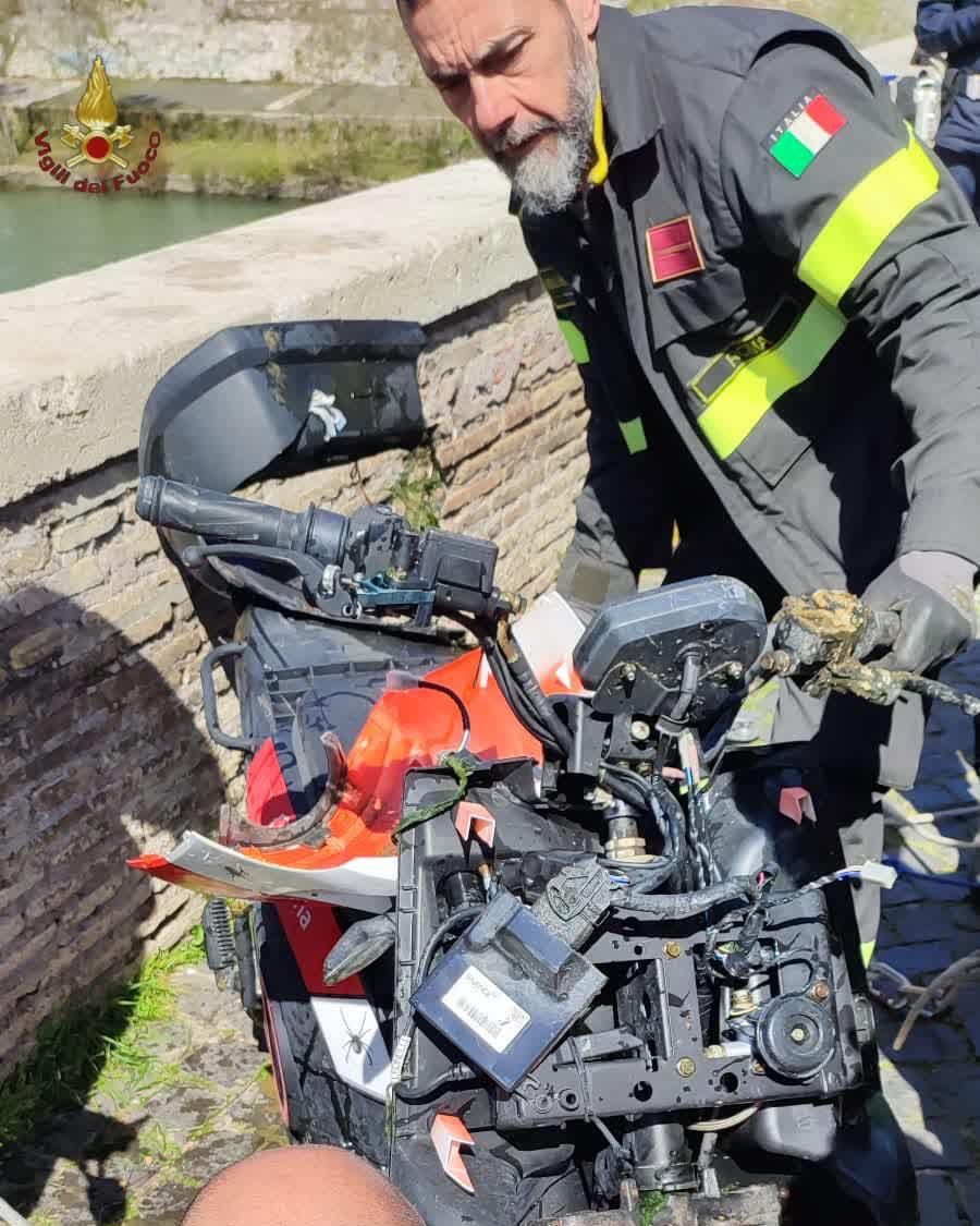 Uno scooter nel fiume Tevere a Roma ha fatto temere che, oltre al mezzo, fosse finita nel fiume anche qualche persona. Per questo, stamattina poco dopo le 9, in seguito alla segnalazione fatta dagli agenti della polizia locale di un ciclomotore in acqua sotto Ponte Milvio, sono intervenuti i vigili del fuoco e i sommozzatori. I soccorritori hanno verificato che nelle vicinanze e sulle sponde del fiume non vi fosse nessuno. Hanno quindi recuperato il ciclomotore affidandolo alla polizia locale.
