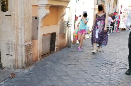 Il topo tra i piedi dei Turisti in via delle Carrozze a Roma
