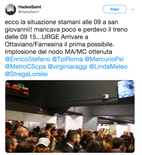 Ieri mattina un utente di Twitter ha pubblicato un video in cui si vede una fiumana di gente accalcata davanti ai tornelli. Quella che sembrerebbe una scena da apertura di un grande concerto rock è invece la scena – quotidiana – che si verifica nelle ore di punta nella stazione di San Giovanni. E che non riguarda rockettari scatenati ma pendolari che cercano di raggiungere l’università o il posto di lavoro: