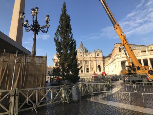 Innalzato questa mattina in Piazza San Pietro il grande abete rosso, proveniente dal territorio di Pordenone e donato dalla Regione Friuli Venezia Giulia per fungere per quest’anno da albero di Natale.