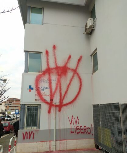 “I vigliacchi farneticanti No Vax hanno imbrattato la Casa della salute a Tenuta di Torrenova nell’Asl Roma 2”. Lo scrive l’assessore alla Salute della regione Lazio Alessio D’Amato pubblicando anche una foto.