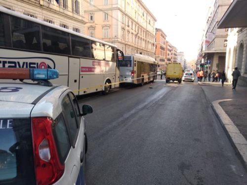 Una lunga scia di olio lubrificante si stende in via Cavour, da Piazza Cinquecento fino all’incrocio con via Torino. Il rischio che l’asfalto reso viscido e scivoloso potesse essere causa di incidenti ha fatto intervenire in zona diverse pattuglie della polizia locale di Roma Capitale che stanno presidiando l’area restringendo la carreggiata e permettendo al personale tecnico di cospargere l’area interessata di materiale assorbente.