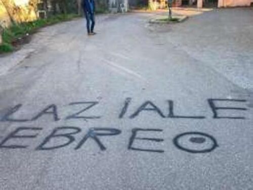 ‘Laziale ebreo’: e’ la grande scritta apparsa questa mattina sull’asfalto del piazzale esterno dell’istituto comprensivo ‘Giacomo Leopardi’, alla Balduina. La foto ha fatto il giro del web, suscitando reazioni di indignazione, a partire dal vicesegretario regionale del Pd Enzo Foschi che l’ha pubblicata sul suo profilo Facebook commentando: “E’ evidente che esistono persone che scrivendo ‘ste cose (sempre di notte e di nascosto) – afferma – si sentono eroi, in realta’ sono solo m…”.