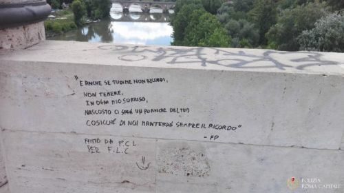 Con un pennarello nero ha scritto frasi d’amore in tre punti diversi di Ponte Flaminio a Roma. La writer, una ragazza italiana di origini peruviane e residente a Riano, è stata per questo denunciata dalla polizia locale del Gruppo Parioli.