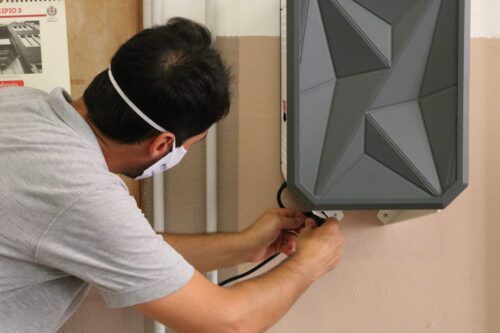 L?istallazione dei depuratori per l?aria all?istituto Schiapparelli-Gramsci di Milano. (Foto: Città metropolitana di Milano)