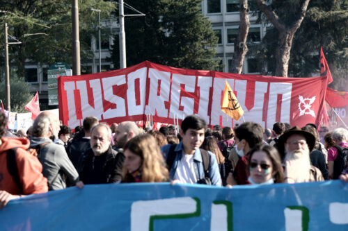 Il corteo contro il G20 che vede un migliaio di manifestanti, a Roma, tra Cobas, studenti, lavoratori della Gnk di Firenze, e diversi raggruppamenti politici della galassia della sinistra estrema.
