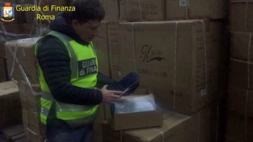 Al fine di individuare i canali di approvvigionamento della merce, i militari delle Fiamme Gialle sono risaliti alla società proprietaria della merce. Quest’ultima, pur avendo sede legale nel comune di Roma, in realtà gestiva un capannone ubicato nella zona dei depositi ferroviari di Anagni (Fr).