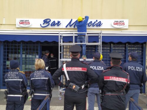 I carabinieri di Roma hanno liberato, questa mattina a Tor Bella Monaca, i locali occupati dal bar Moccia. All’attività commerciale riconducibile all’omonimo clan della zona, era stata revocata la licenza su disposizione del prefetto Matteo Piantedosi perchè ritrovo di persone gravate da precedenti penali o in cui si ipotizzava potessero svolgersi attività criminali.