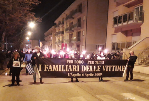 Dopo due edizioni in cui la città non ha potuto vivere l’anniversario del terremoto in maniera collettiva, migliaia di fiaccole tornano ad attraversare via XX Settembre, una delle strade più colpite dal sisma che, tredici anni fa, nella notte tra il 5 e il 6 aprile 2009 distrusse L’Aquila e i comuni circostanti. In corteo anche bandiere della pace e bandiere dell’Ucraina, a suggerire un appello alla pace.
