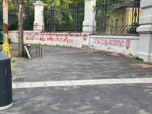 Questa mattina sono state coperte le scritte no vax apparse ieri sui muri dell’ospedale Lazzaro Spallanzani e che si rivolgevano in modo offensivo al personale impegnato nella lotta al Covid.