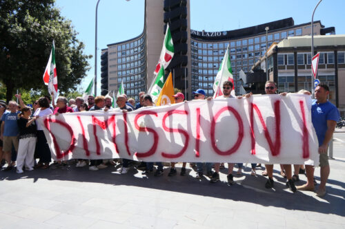 A Roma il Partito democratico continua a chiedere le dimissioni di Marcello De Angelis e insieme alle opposizioni del centrosinistra chiede la convocazione di una seduta straordinaria del consiglio regionale. Bandiere e megafoni alla mano questa mattina una cinquantina di esponenti del partito si sono dati appuntamento sotto la Regione Lazio per protestare contro la decisione del presidente Francesco Rocca di non sospendere dal suo incarico di capo della comunicazione Marcello De Angelis dopo le polemiche attorno alle sue dichiarazioni sulla strage di Bologna. In prima fila a stringere il lungo striscione bianco c’erano il segretario romano del Pd, Enzo Foschi, e il segretario regionale del partito, Daniele Leodori. “Mi sembra una cosa incredibile che ancora non si sia dimesso”, ha spiegato Foschi. Le affermazioni di De Angelis “sono di una gravità inaudita e ricordiamo che lui non è un passante ma è il portavoce della Regione Lazio e ricopre un ruolo istituzionale – ha proseguito -. Ci vergogniamo di essere rappresentati da un’istituzione che non è in grado di capire la gravità delle affermazioni che sono state fatte”.