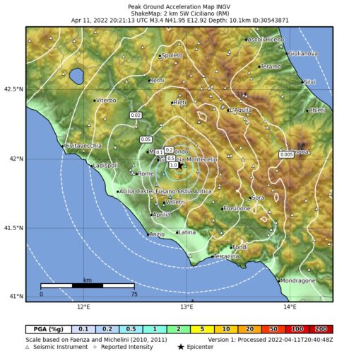 Una scossa di terremoto di magnitudo 3.4 è stata registrata ieri sera alle 22:21 in provincia di Roma. L’epicentro è stato localizzato dall’Ingv nel comune di Ciciliano, a circa 10 chilometri da Tivoli.