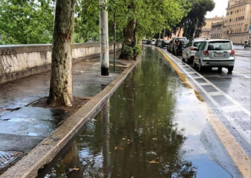 Polemiche e dibattiti per immagine postata da un utente su Twitter qualche giorno fa. Lo scatto ritrae la ciclabile che da Ponte Testaccio prosegue sul lungotevere in direzione centro – lato Sinagoga – immersa in un acquitrino.