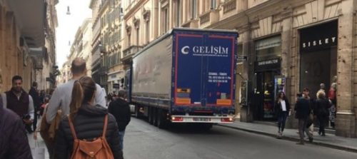 Protagonista un Tir con targa di Istanbul che chissa’ come e’ riuscito ad arrivare dal Lungotevere fino a un pezzo di via del Corso, in prossimita’ di piazza San Lorenzo in Lucina, dopo aver superato largo Goldoni, dove ormai abitualmente stazionano mezzi delle forze di polizia. E il Tir – racconta un