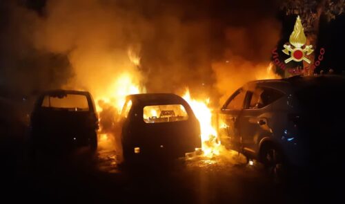 Nel rogo, avvenuto all'interno di un cortile condominiale, le vetture sono andate completamente distrutte