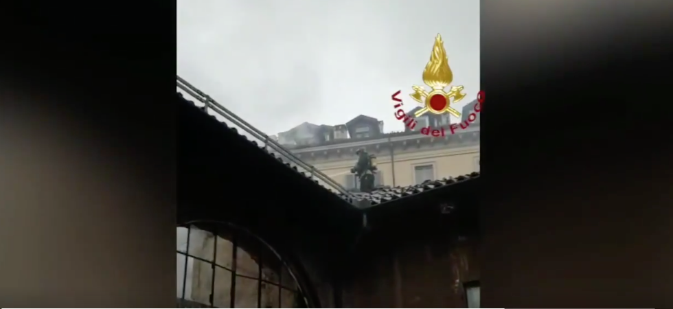 #Torino 9:30 #21ottobre, #incendio locali della Cavallerizza Reale: crollo parziale di una porzione del tetto andato in fiamme. Incendio spento dai #vigilidelfuoco, in corso ultime operazioni di bonifica pic.twitter.com/jWEkSwDIr9