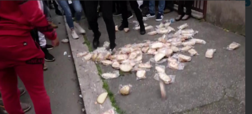 I panini calpestati dai manifestanti davanti al centro che pista i rom