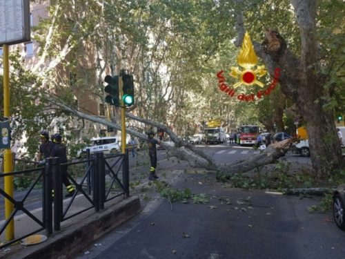Un grosso ramo di platano e’ caduto, ieri, pomeriggio, sulla linea del tram a viale Regina Margherita, all’altezza di piazza Buenos Aires, in zona Parioli a Roma. Sul posto i vigili del fuoco, con autoscala e autogru, e la polizia locale.